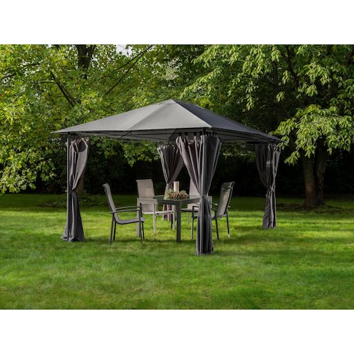 Tonnelle de jardin avec rideaux - Acier et polyester - 296X396X265cm - Gris