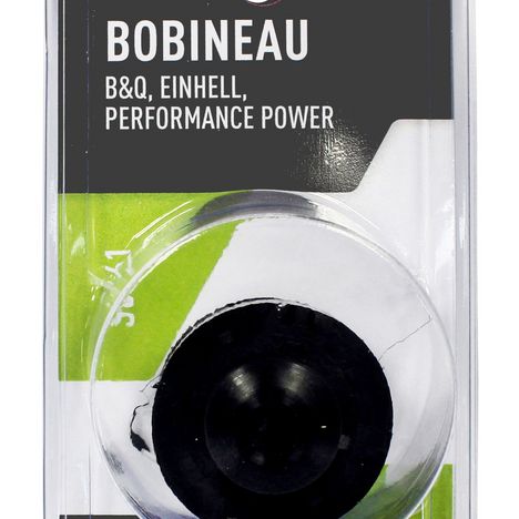 Bobinneau pour coupe bordure B&Q modèles TRY250SGTA, TRY300SGTA - EINHELL modèles: ERT250, RT325/1, ERT350, RT350, BG-ET2620 - PERFORMANCE POWER et IRONSIDE modèle: IGT250 250W, AIE JD9306 - Livré avec fil de Ø: 1,2mm. Remplace origine: 34.050.10