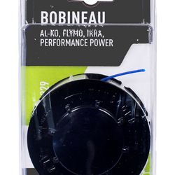 Bobineau adaptable pour AL-KO modèle GT450 - B&Q: PP5002, RT 8503-DV - DRAPER modèle GT4729DA (Origine: 56725) - FARM & GARDEN modèle XT475 - FLEURELLE modèles RTT29, RTV29 - FLYMO modèles Powertrim 500 (Origine: 9539003-33), Powertrim 700 (Origine: 9539003-34) - GARDOL modèles RT2950L, GT5530, RT2980 TwinCut - IKRA modèles RT500, RT2008DV, RT4003DV et RT4003DV Swingline, RT4005DV, RT4006DV, Twincut, RT4803DV, RT4804DV, RT4908DV, RT7508DV, RT8503DV, RT9008DV, RT9108DV, Ironside RT8505DV - MOUNTFIELD modèle RT4003DV - PERFORMANCE POWER modèles PP5002 et RT8503DV - PRAKTIKER / FLEURELLE modèles RTT29 et RTV29 - STIGA modèle ST475 - Livré avec fil de 1,3mm. Remplace origine: AGP4, 5119387-8, 5382487-50, FLY029. (sous coque)