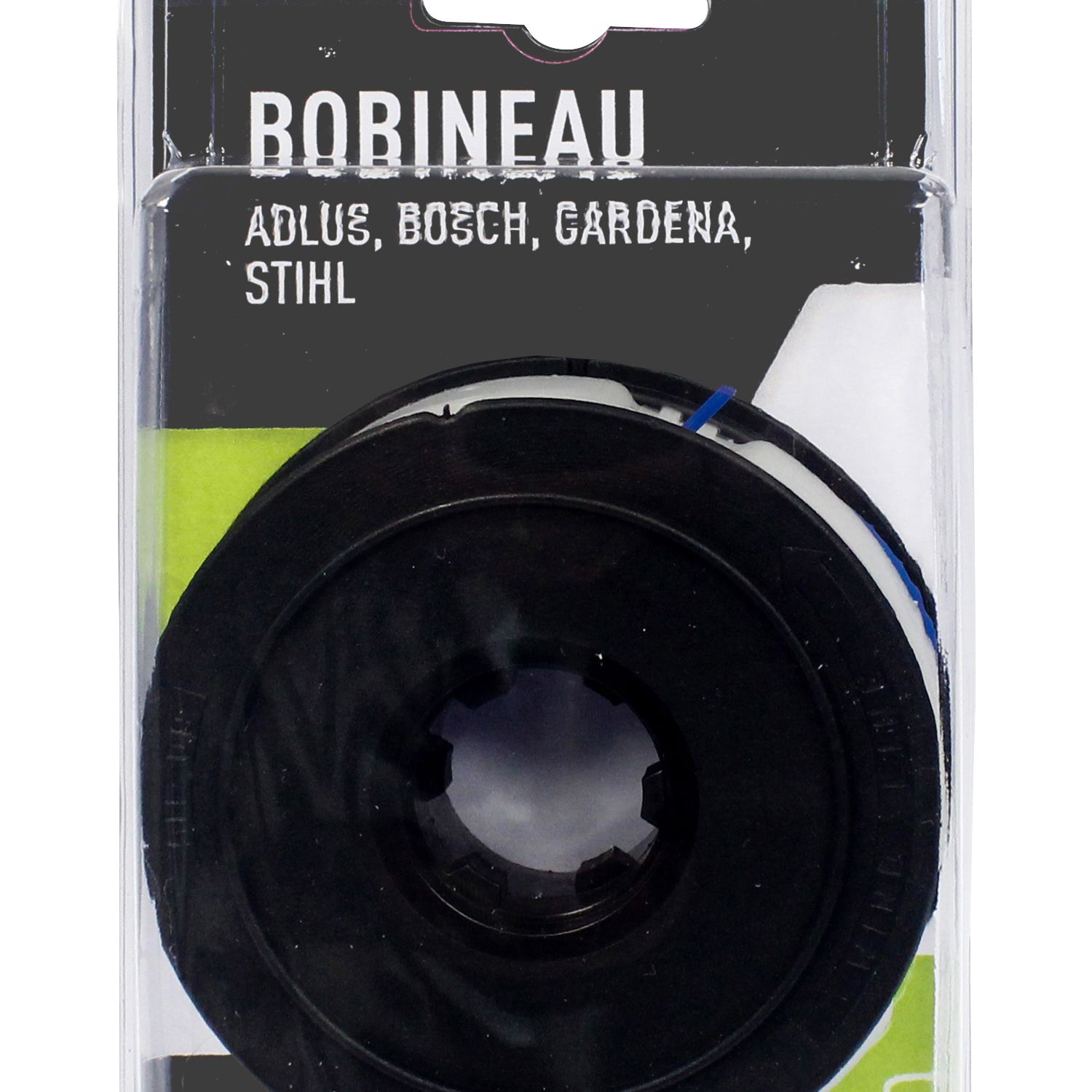 Bobineau coupe bordure adaptable pour ADLUS modèles: Ufomatic, Ufocontrol, Ufotronic, 3545XS, 3545GXS - BOSCH Modèles: ART23, ART26, ART26Li, ART30, ART30FA, PRT30, PRT30FA, GARDENA modèles E+Sense 1000, FE-Sense 1000 STIHL E35, E40, FE35, FE40 - Remplace Origine: 69445, 1609202382. (sous coque)