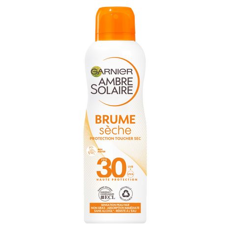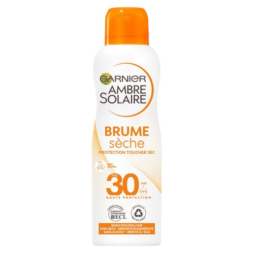 La brume sèche Garnier Ambre Solaire est une protection toucher sec pour un effet "peau nue" inédit tout en offrant une protection optimale contre les rayons UVB et UVA. Résultat : toucher sec effet peau nue inédit. Absorption immédiate.