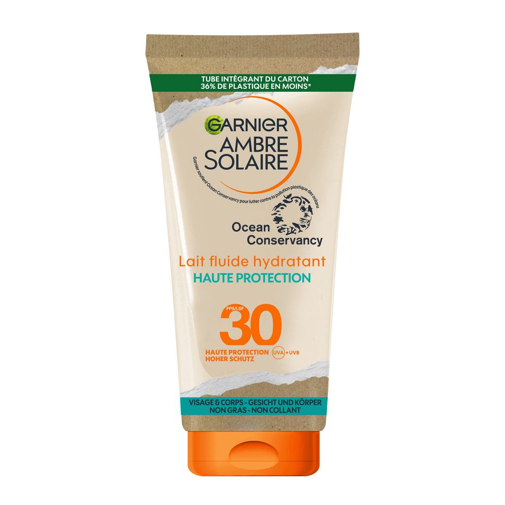 Découvrez le lait fluide hydratant haute protection FPS30 Garnier Ambre Solaire. Il offre une large protection contre les UVA et UVB. Protection contre les UVA et UVB.