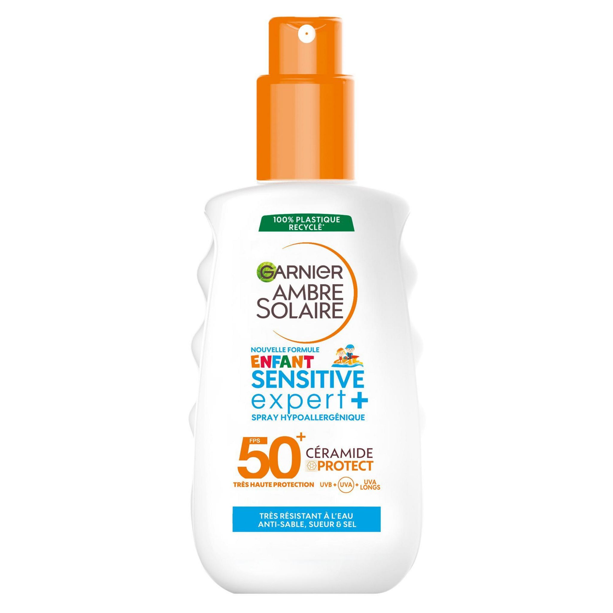Le spray hypoallergénique enfant FPS50+ Sensitive Expert+. Testé sous contrôle pédiatrique, il convient aux peaux sensibles des enfants. Très résistant à l'eau et au sable, il laisse un fini non gras, non collant et ne laisse pas de marque blanche. Sans parfum, sans alcool. Pompe ON/OFF. Bouteille 100% en plastique recyclé. Très haute protection contre les UVA, UVB et UVA longs.