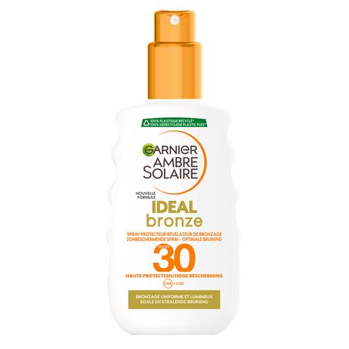 Le spray Ideal Bronze protège la peau tout en apportant un bronzage uniforme et lumineux. La peau est protégée tout en révélant le bronzage.