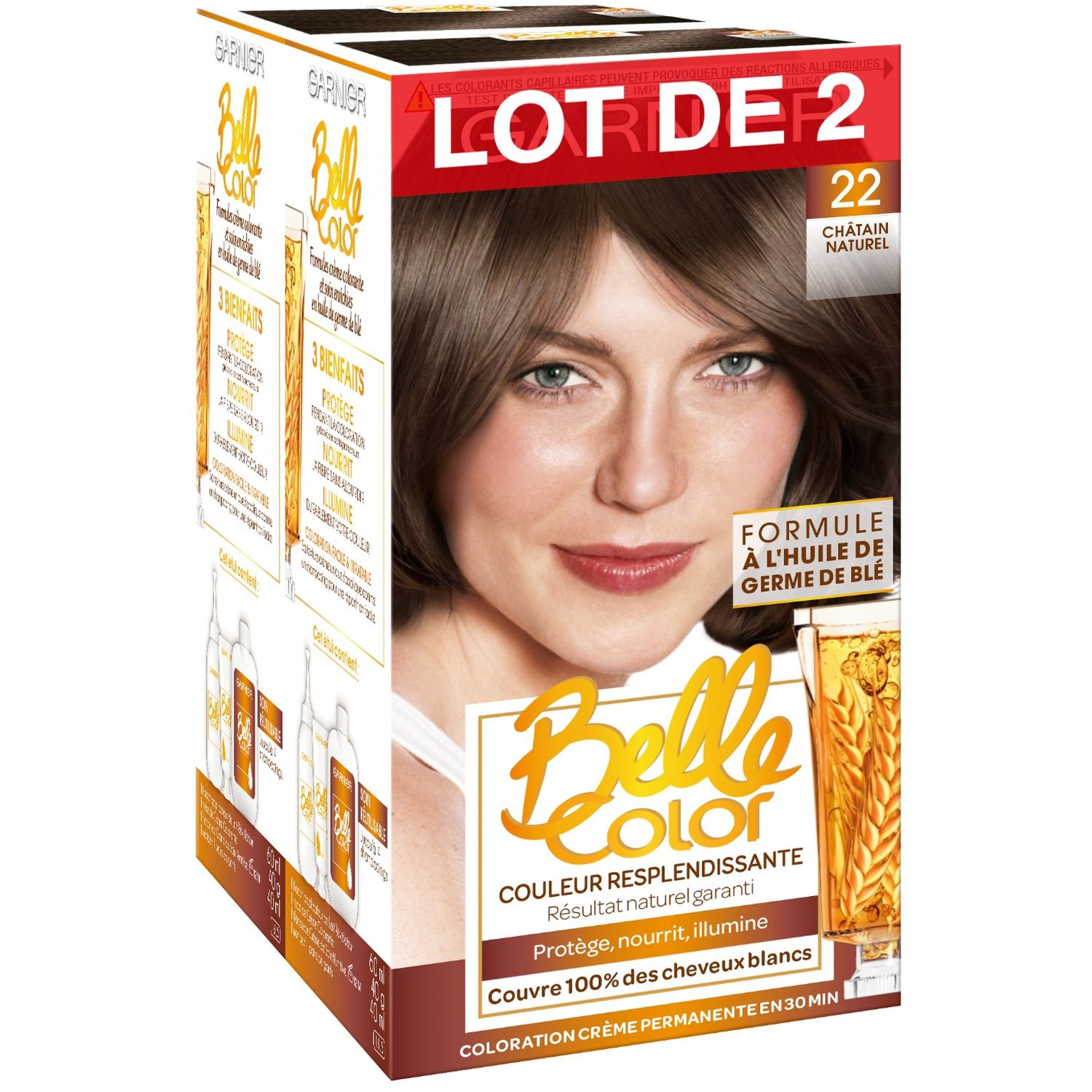 Grâce à ses colorants nuanceurs, Garnier Belle Color respecte les contrastes et le relief propre à une couleur naturelle pour un résultat harmonieux et une couleur lumineuse tout en nuances. Elle couvre 100% des cheveux blancs. Subtile, tout en reflets et sans effet casque, la couleur est si naturelle que l’on pourrait croire que c’est votre couleur d’origine.