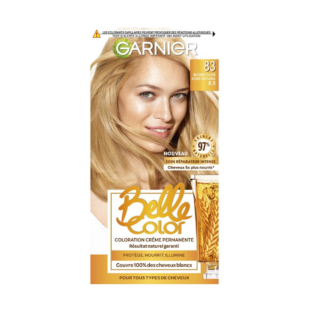 Belle color coloration permanente blond clair doré naturel 83
