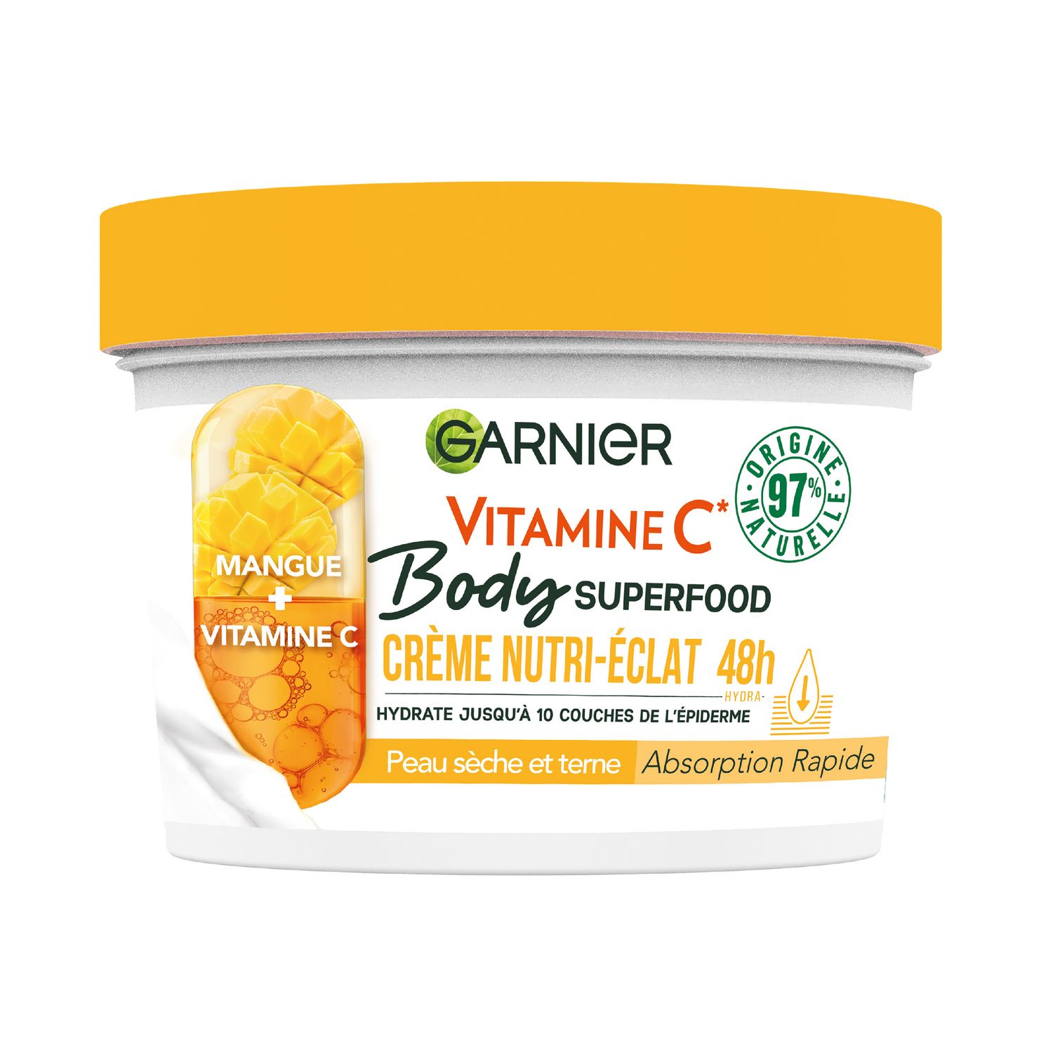 Découvrez le nouveau soin du corps Garnier Body Superfood ! 48h d'hydratation jusqu'à 10 couches de l'épiderme dans une formule à 97% d'origine naturelle, vegan et approuvée par Cruelty Free International. Hydrate 48h