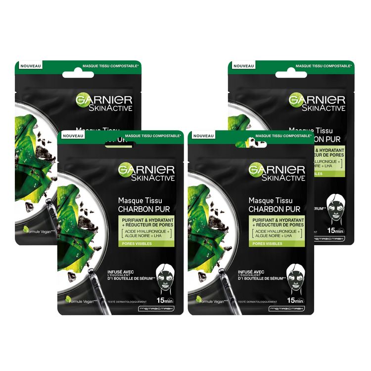 GARNIER SKINACTIVE MASQUE PUR CHARBON LOT DE 4