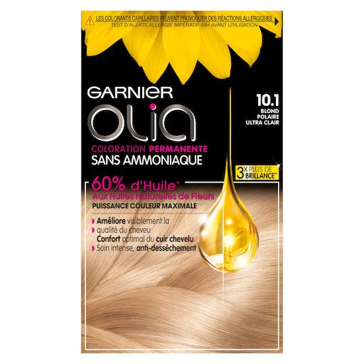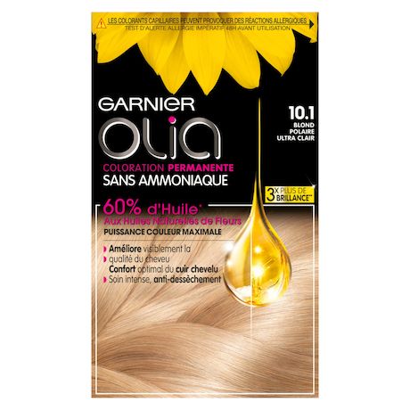 Garnier, Olia, 10.1, blond, polaire, ultra clair, coloration, domicile, sans ammoniaque, huile, puissance couleur maximale, longue tenue, 100% cheveux blancs