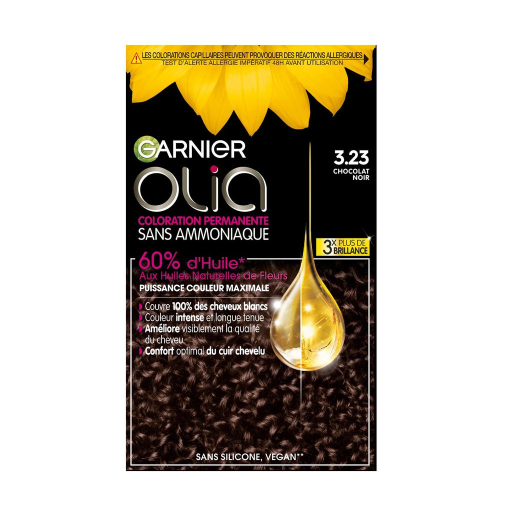 Découvrez Olia de Garnier, coloration permanente sans ammoniaque activée par l'huile pour une amélioration visible de la qualité du cheveu et une puissance couleur maximale. Couleur maximale, riche et longue tenue. Couverture à 100% des cheveux blancs*. Application sensorielle unique pour un moment de plaisir sans pareil. Son délicat parfum de fleurs diminue la sensation d'inconfort pendant l'application et la pose. *Tests instrumentaux