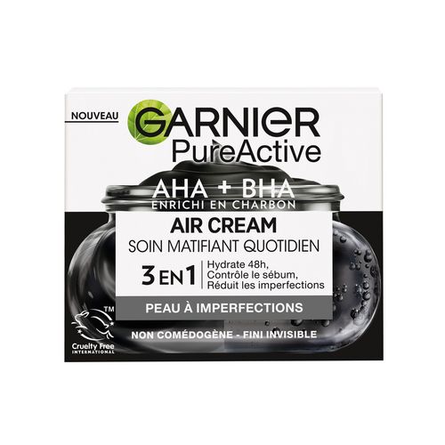 PureActive Soin matifiant quotidien 3en1 au charbon pour peau à imperfections