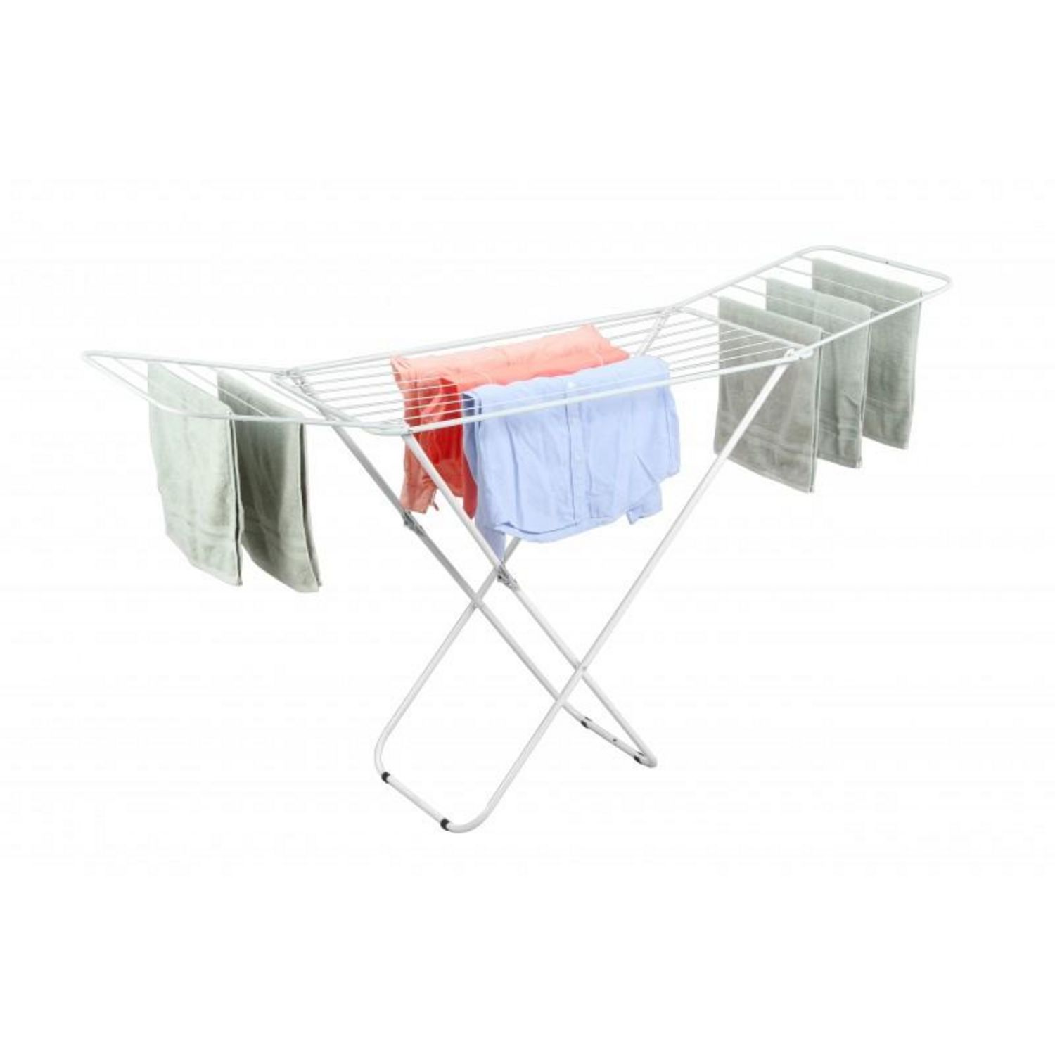 - Les deux bras de l'étendoir à linge se déplient, multipliant les surfaces disponibles pour suspendre les vêtements ou le linge de maison.