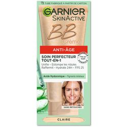 Une peau parfaite en 1 seul geste avec la BB crème de Garnier. Résultat : une texture confortable avec couvrance adaptée pour ne pas marquer les rides. Garnier SkinActive - BB Crème BB Crème Anti-Age Teinte Claire 50 ml