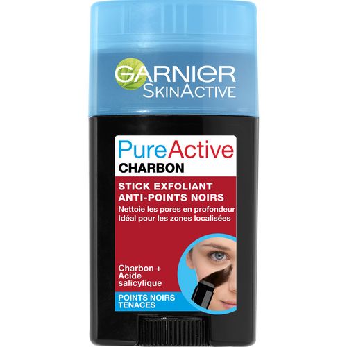 Stick exfoliant charbon anti-points noirs Efficacité prouvée : 1) la peau est parfaitement nettoyée pour 96% des utilisateurs*. 2) les points noirs sont réduits pour 87% des utilisateurs** *Auto-évaluation, 44 sujets après 1 utilisation, ** Après 4 semaines Garnier Pure Active STICK EXFOLIANT ANTI-POINT NOIRS 50 ml