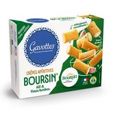 Ingrédients : Farine de BLE, maltodextrine, huile de colza, fromage Boursin® Ail et fines herbes deshydraté 12% (LAIT et CREME pasteurisés, ferments LACTIQUES, ail et fines herbes (1,4%), sel, poivre), LAIT entier en poudre, BEURRE concentré, protéines de LAIT, graisse végétale (coprah), sirop de glucose, sel, extrait de malt d'ORGE, préparation en poudre aromatisée (ail 0,3%, persil 0,05%, ciboulette 0,05%, poivre, arômes naturels), émulsifiant : lécithines, acidifiant : acide citrique, colorant : extrait de paprika.