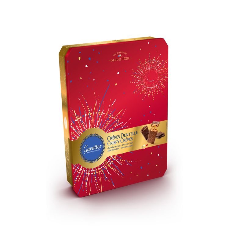 Assortiment de 40 crêpes dentelle enrobées de chocolat au lait et de 40 crêpes dentelle enrobées de chocolat noir