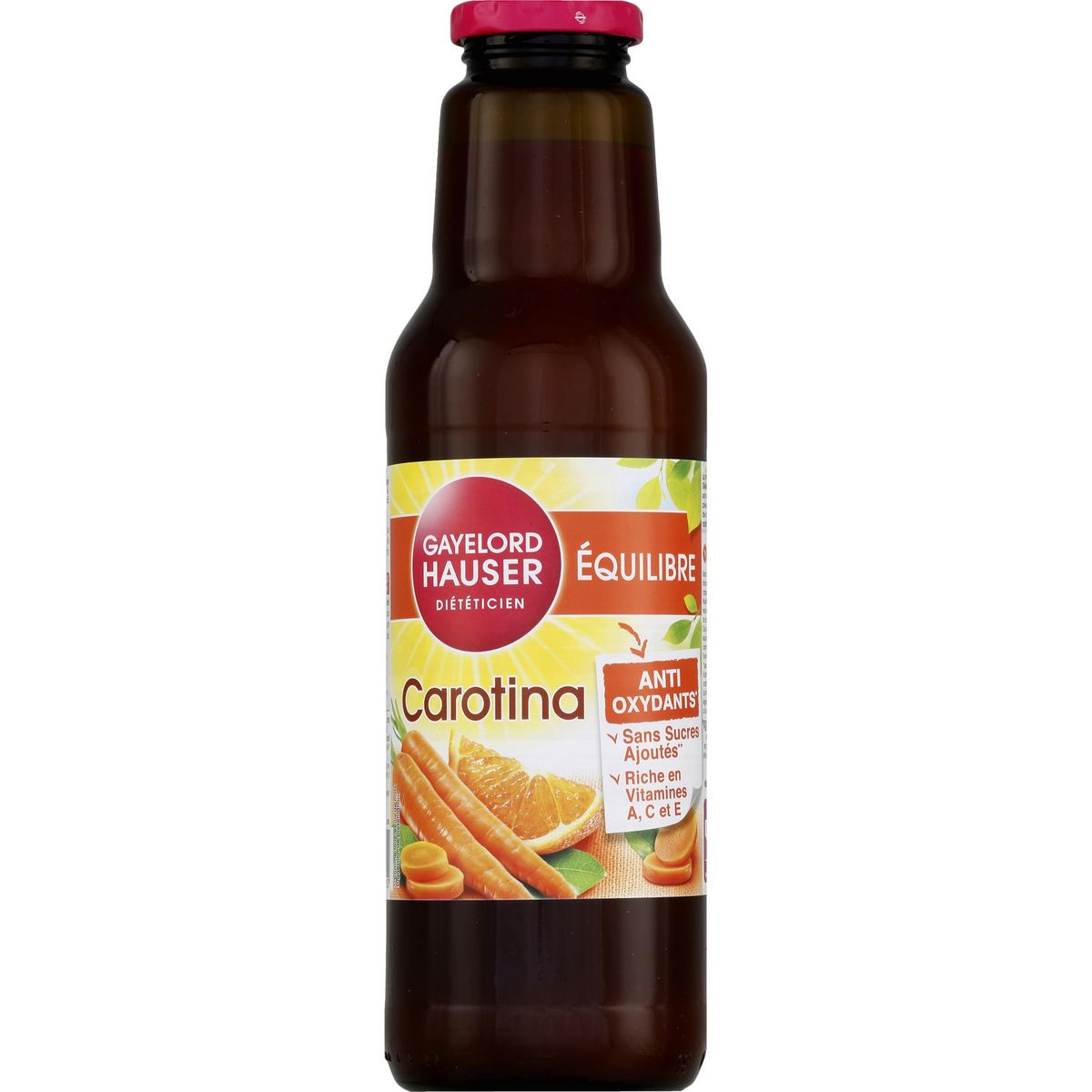 Jus de carotte et d’orange à base de concentré, enrichi en vitamines C et E.