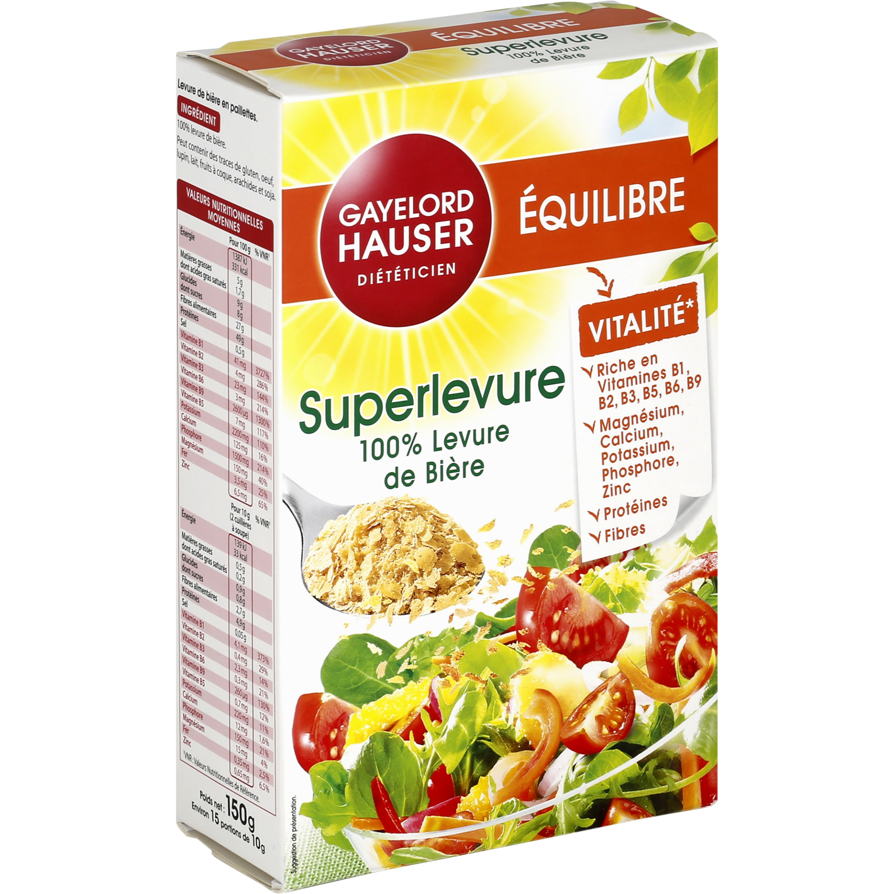 Un allié Vitalite et Beauté au quotidien ! La Superlevure Vitalité en Paillettes est un véritable concentré de vitamines et de minéraux qui contribue à pallier les déséquilibres alimentaires de la vie quotidienne. Composée à 100% de levure de bière, cet assaisonnement est à saupoudrer directement sur les salades, les plats cuisinés ou à incorporer dans les laitages.