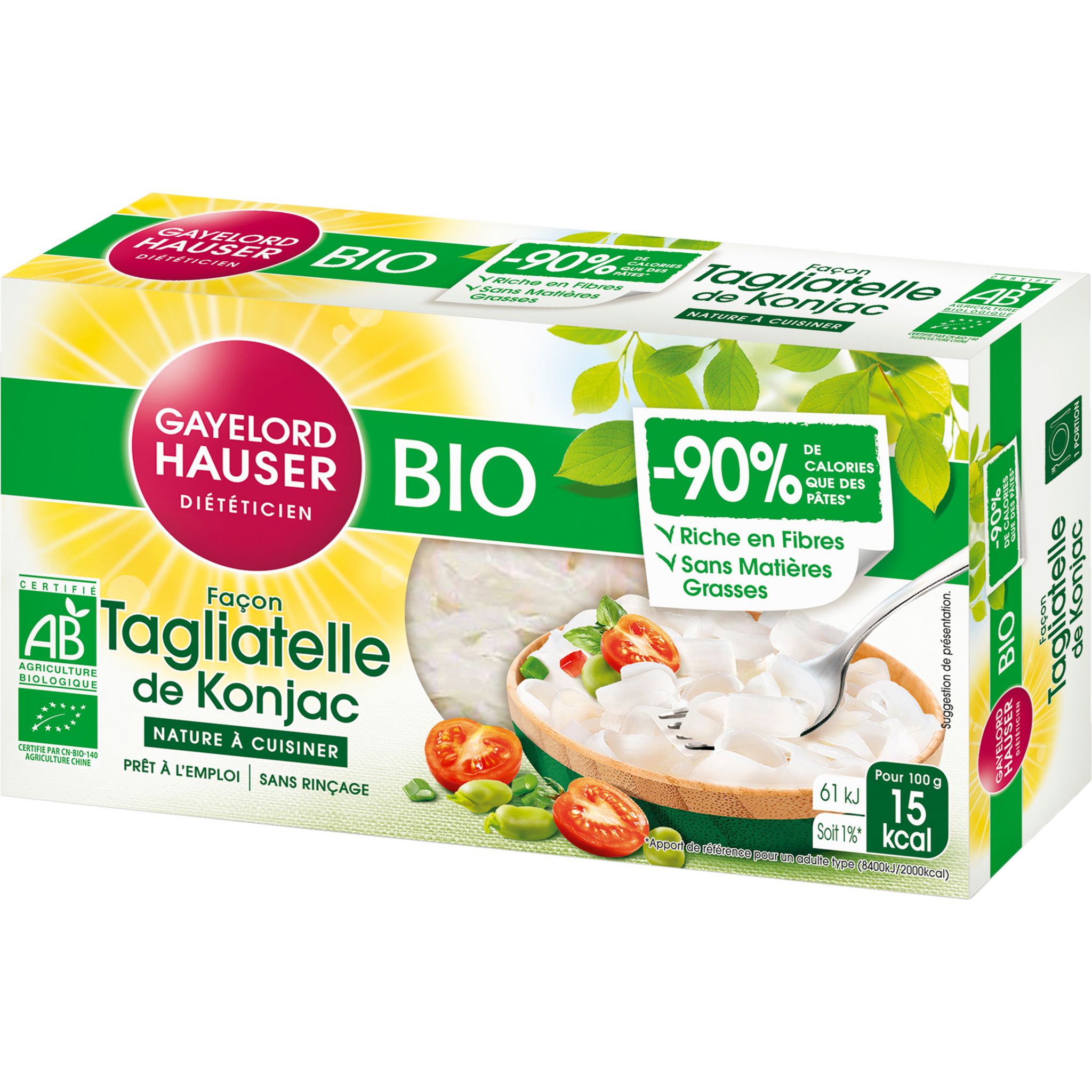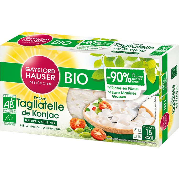 Les Konjacs BIO façon tagliatellesont une excellente alternative aux pâtes classiques avec seulement 15 calories par portion soit 85% de moins que les pâtes. Elles se consomment à toutes les sauces et remplacent les pâtes aux côtés de vos viandes ou légumes. Riches en fibres, sans matières grasses et à teneur réduite en glucides par rapport aux pâtes, elles permettent de se faire plaisir sans culpabiliser ! Le Konjac est un ingrédient traditionnel et naturel originaire d'Asie dont les fibres gonflent au contact de l'eau dans l'estomac, donnant ainsi un effet rassasiant. Son packaging en carton est recyclable.