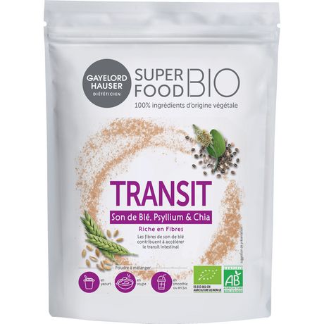 Découvrez les bienfaits de notre gamme de superfood, riche en nutriments essentiels et 100% BIO. La poudre TRANSIT riche en fibres de Son de Blé contribue à l'accélération du transit intestinal. La poudre doit être réhydratée en la mélangeant dans un grand verre d'eau, de boisson végétale, de lait, ou de jus. Vous pouvez également la consommer dans un yaourt, une compote ou une soupe.