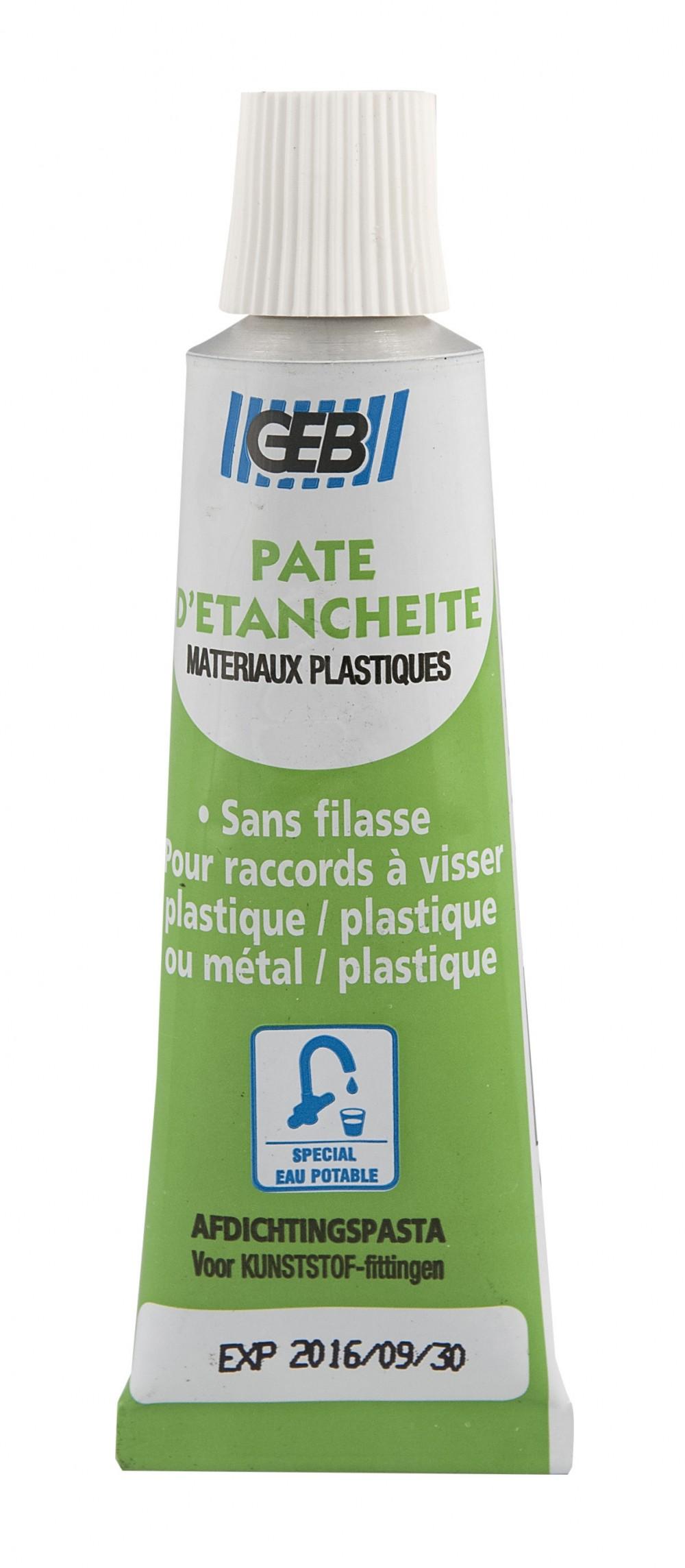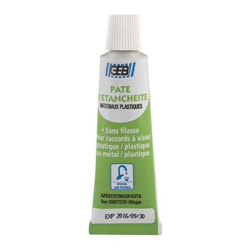 Agrément eau potable. Démontage facile. Pour raccords plastiques et/ou raccords mixtes (plastique-métal).Nom du produit: Pâte d'étanchéitéMarque du produit: GEBProduit emballé : hauteur (en cm): 19.1Produit emballé : largeur (en cm): 6Produit emballé : profondeur (en cm): 2.6Produit emballé : poids