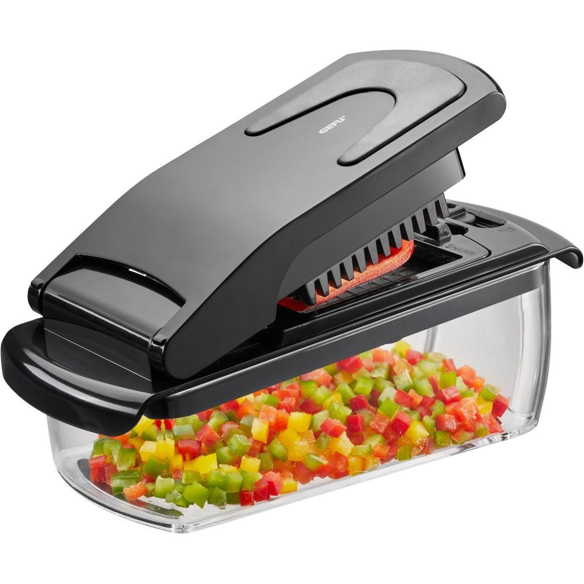| Particularité | 2 grilles de coupe interchangeables et blocables pour bâtonnets ou dés fins (7 x 7 mm) et grossiers (13 x 13 mm) Démontable pour un nettoyage facile | |