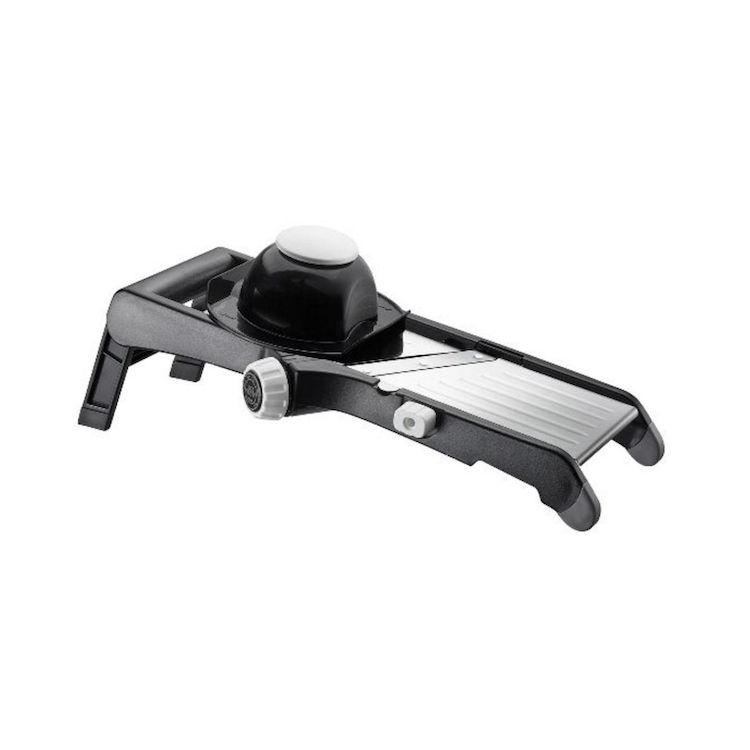 Pour tranches lisses ou ondulées de différentes épaisseurs ou pour julienne, au choix d'une largeur de 4,5 ou 9 mm. Les pieds antidérapants assurent la stabilité.