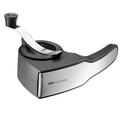 Gefu 19060 Râpe rotative Laser Cut Pecorino GEFU 19060. Ses deux râpes interchangeables permettent de râper fin et gros. Placer tout simplement le fromage dur, les noix, le bloc de chocolat ou l'ail dans l'entonnoir de la râpe, tourner la manivelle et c'est fini! 2 râpes amovibles : fine et grosse. Récipient de conservation pouvant être fermé. Possibilité de râper directement dans le recipient de conservation. Râpage complet de la denrée. Changement aisé de la râpe. Démontable pour faciliter le nettoyage.