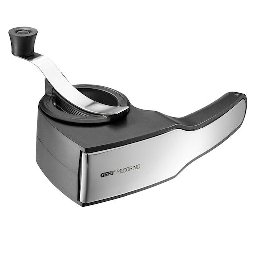 Gefu 19060 Râpe rotative Laser Cut Pecorino GEFU 19060. Ses deux râpes interchangeables permettent de râper fin et gros. Placer tout simplement le fromage dur, les noix, le bloc de chocolat ou l'ail dans l'entonnoir de la râpe, tourner la manivelle et c'est fini! 2 râpes amovibles : fine et grosse.
