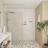 Découvrez la paroi fixe Only effet bois de 100 cm de largeur. Cette paroi fixe est équipée de profils en aluminium et d'un panneau en verre transparent. Sa hauteur est réglable de 210 a 265 cm, offrant une adaptation facile a votre espace de salle de bain.