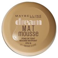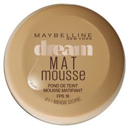 Dream Matte Mousse, un fond de teint mousse au fini mat poudré + base matifiante FPS 18. Sa formule brevetée se transforme en poudre sur la peau : elle matifie votre teint pour un effet peau de pêche et une peau incroyablement douce. Sa texture mousse fouettée est légère et micro-aérée : elle laisse respirer la peau et permet une facilité d'application et une maîtrise parfaite du maquillage pour obtenir la couvrance rêvée.