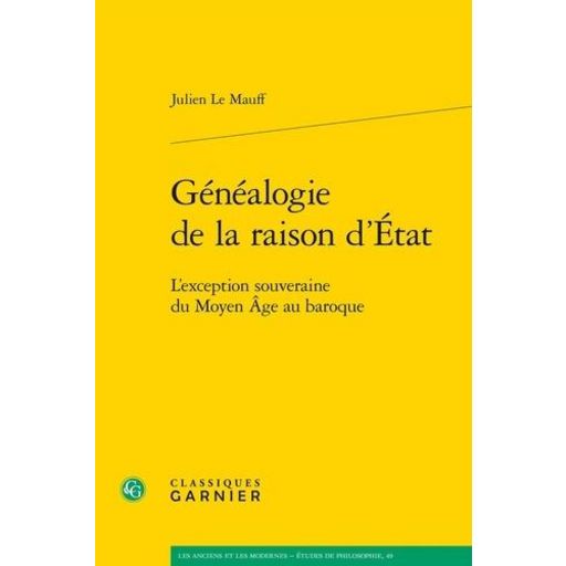 GENEALOGIE DE LA RAISON D'ETAT. L'EXCEPTION SOUVERAINE DU MOYEN AGE AU BAROQUE, Mauff Julien