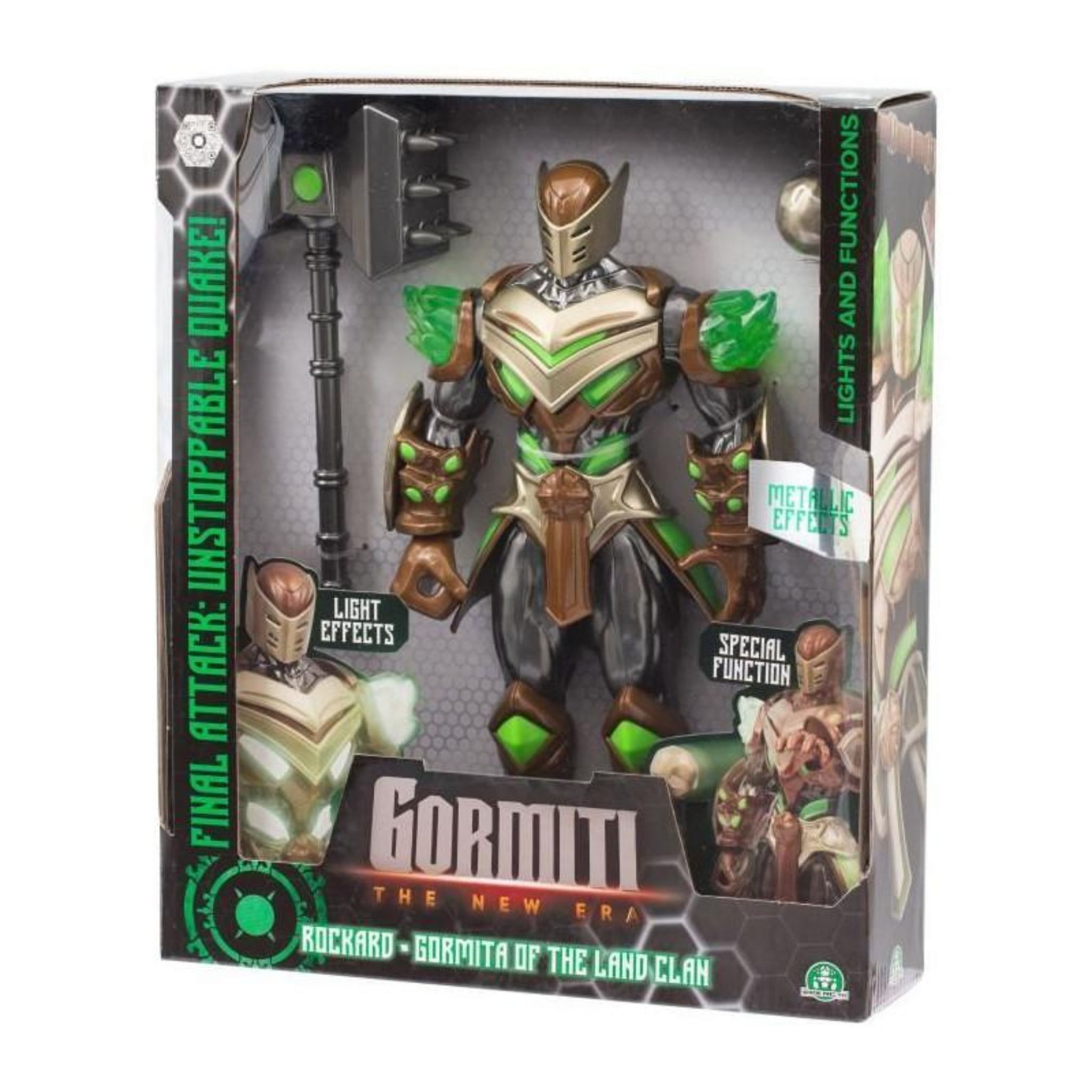 Figurine articulée de 27 cm de la nouvelle série Tv Gormiti. Représentation fidele du personnage Gormiti avec son attaque spéciale et effet lumineux.