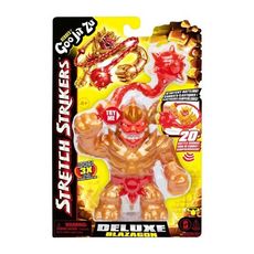 L'original Heroes Of Goo Jit Zu Stretch STRIKERS ! Retrouve ton héros, Blazagon, avec son allure de guerrier, son arme extensible, et ses rugissements sonores féroces ! Contient : 1x Blazagon 11cm Stretch STRIKERS sonore avec une arme extensible