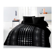 Parure de couette Microfibre STEEVY 220x240cm et 2 taies d'oreillers 63x63cm Noir