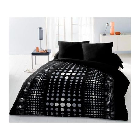 Parure de couette Microfibre STEEVY 220x240cm et 2 taies doreillers 63x63cm Noir