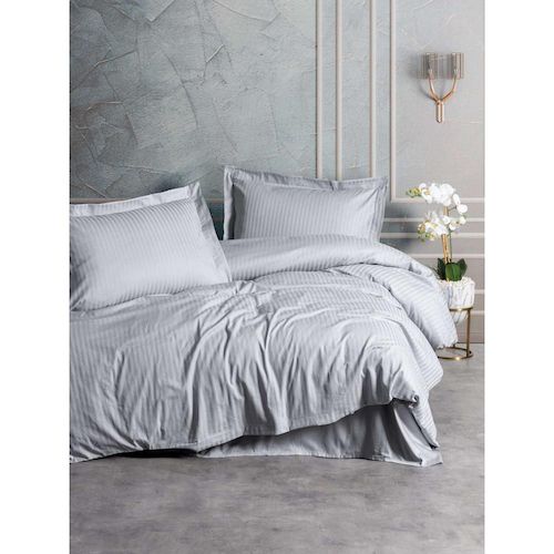 Parure de lit - 1 housse de couette 140 x 200cm + 1 taies d'oreiller 60 x 60 cm - Satin - Imprimé rayures Gris