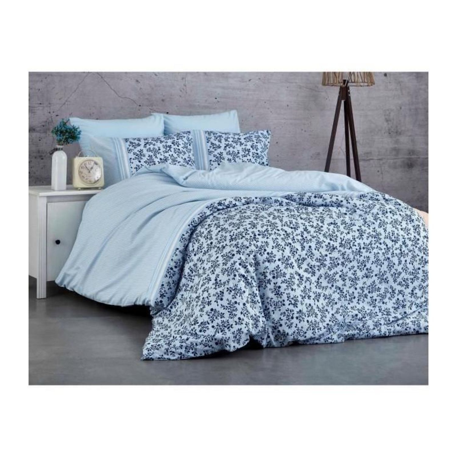 Parure de lit - 1 housse de couette 220 x 240 cm + 2 taies d'oreiller 60 x 60 cm - 100% coton renforcé - Bleu