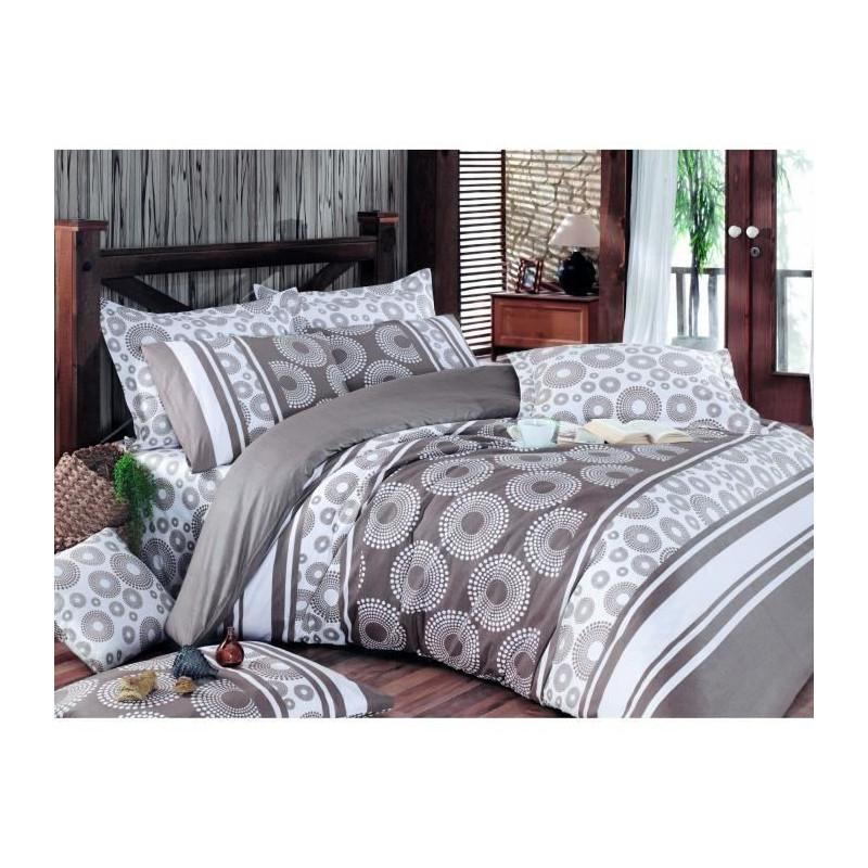 Parure de lit - 1 housse de couette 220 x 240 cm + 2 taies d'oreiller 60 x 60 cm - 100% coton renforcé - Brun
