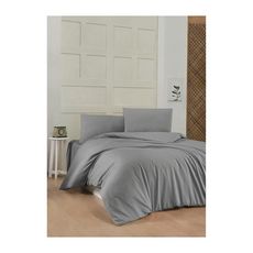 Parure de lit - 1 housse de couette 220 x 240 cm + 2 taies d'oreiller 60 x 60 cm - 100% coton renforcé - Gris