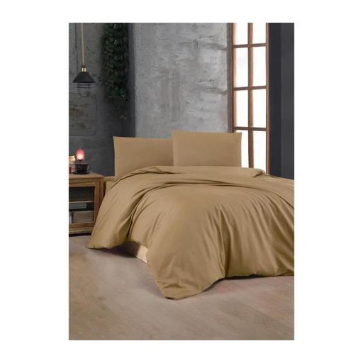 Parure de lit - 1 housse de couette 220 x 240 cm + 2 taies d'oreiller 60 x 60 cm - 100% coton renforcé - Marron