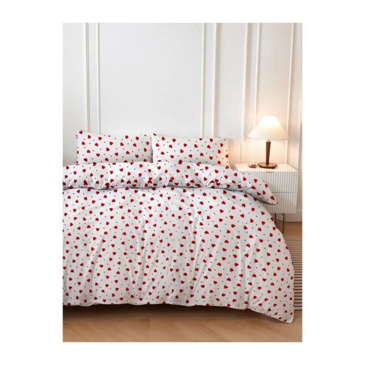 Parure de lit - 1 housse de couette 220 x 240 cm + 2 taies d'oreiller 60 x 60 cm - 50% coton, 50% polyester - Rouge