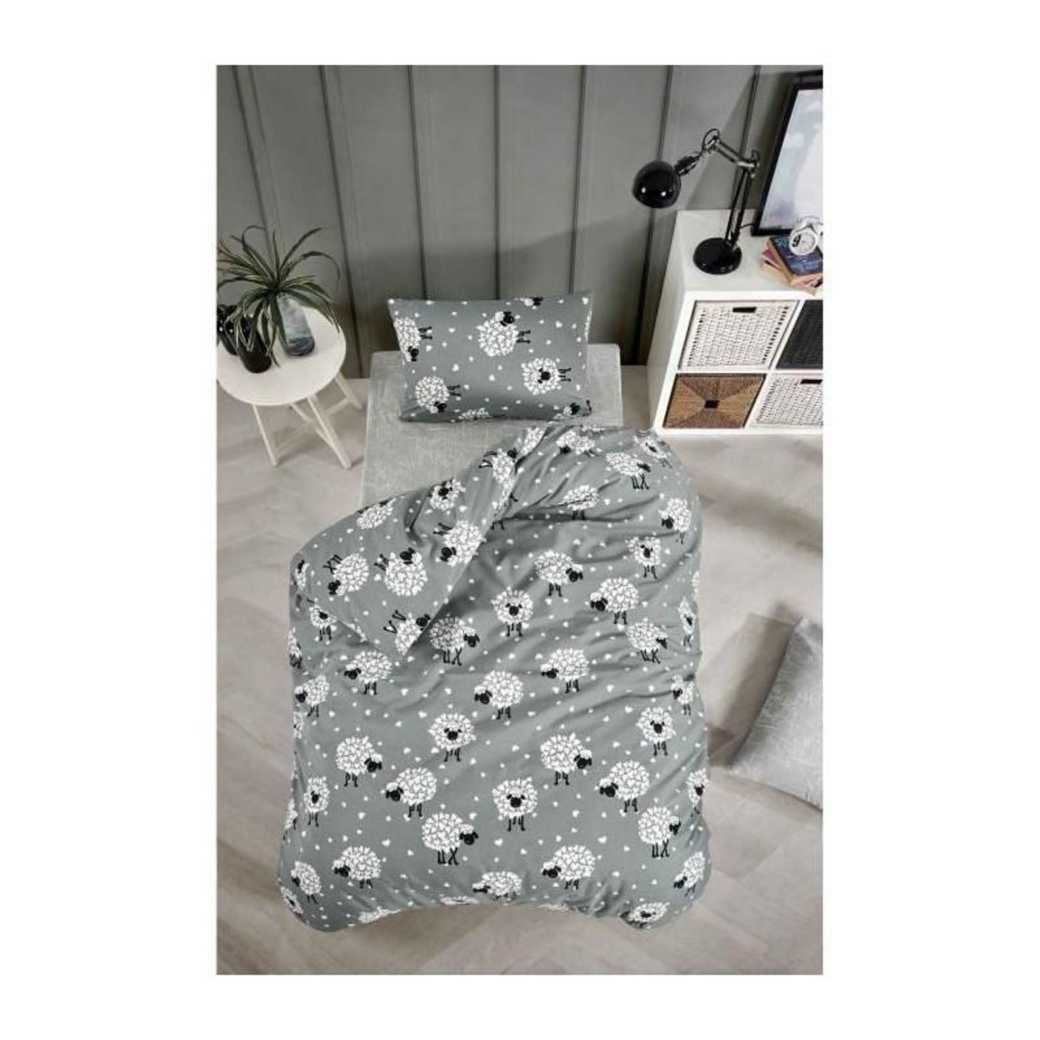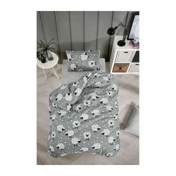 Parure de lit - 1 housse de couette 220 x 240 cm + 2 taies d'oreiller 60 x 60 cm - 65% coton, 35% polyester - Gris
