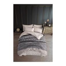 Parure de lit - 1 housse de couette 220 x 240 cm + 2 taies d'oreiller 60 x 60 cm - 65% coton, 35% polyester - Gris