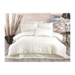Parure de lit - 1 housse de couette 220 x 240 cm + 2 taies d'oreiller 60 x 60 cm - 80% coton, 20% polyester - Creme
