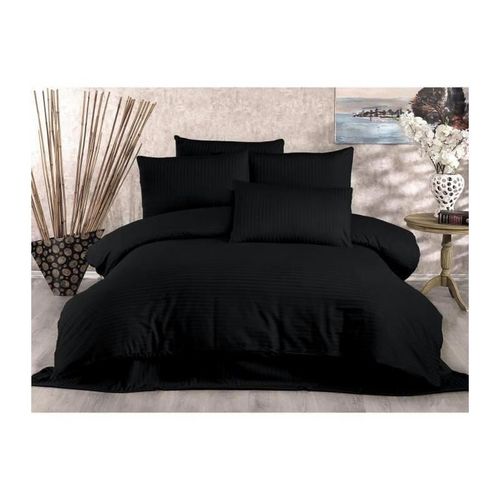 Parure de lit - 1 housse de couette 220 x 240 cm + 2 taies d'oreiller 60 x 60 cm - 80% coton, 20% polyester - Noir