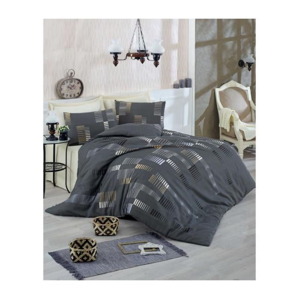 Parure de lit - 1 housse de couette 220x240 cm + 2 taies d'oreiller 60x60 cm - 65% coton, 35% polyester - Anthracite