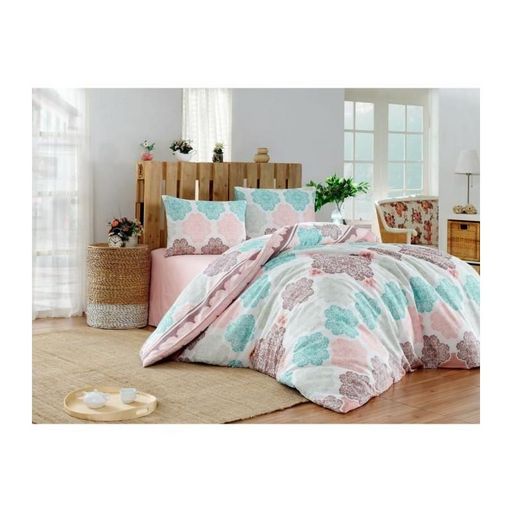 Parure de lit - 1 housse de couette 220x240 cm + 2 taies d'oreiller 60x60 cm - 70% coton, 30% polyester - Turquoise
