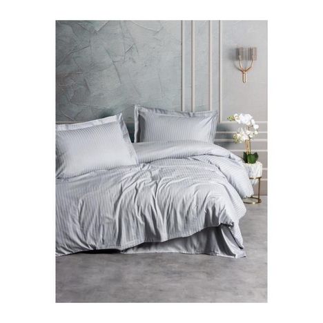 Parure de lit - 129CTF24636 - 1 housse de couette 220 x 240 cm + 2 taies d'oreiller 60 x 60 cm - Satiné 100% coton - Gris