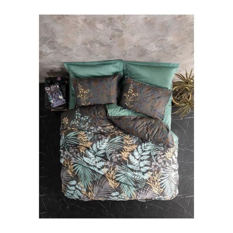 Parure de lit - 129CTN63944 - 1 housse de couette 220 x 240 cm + 2 taies d'oreiller 60 x 60 cm - Satiné 100% coton - Menthe